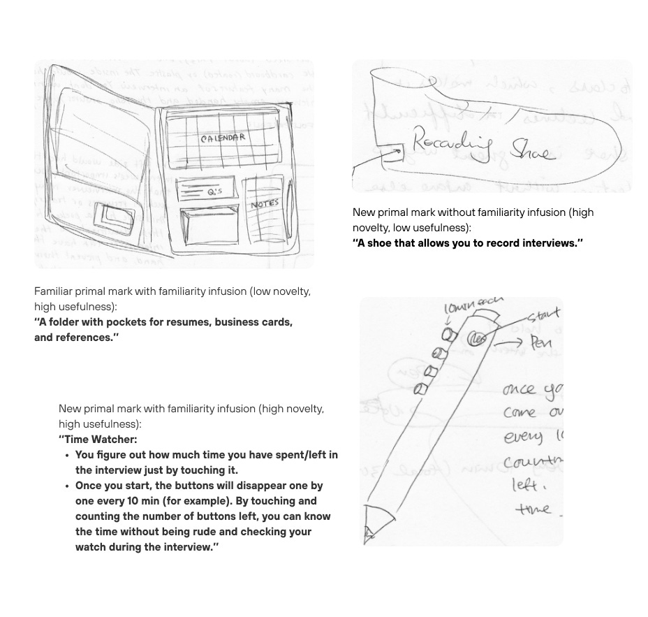 This complex thinking "may foster the identification of more fundamental — and thus more novel — ways of recombining the familiar and new content into one emerging idea." At the same time, because integrative primal marks include familiar elements, you can "leverage these familiar schemas to enhance the clarity, meaning, legitimacy — and thus usefulness — of their emerging ideas."